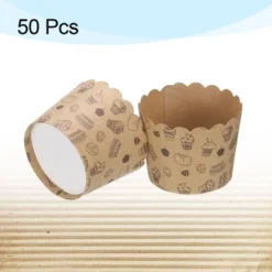 Unique Bargains Disposable Greaseproof Paper Wrappers Cake Muffins Baking Cups 50 Pcs Brown