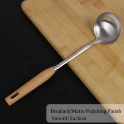 Unique Bargains Kitchen Cooking Utensil Wooden Handle Soup Ladle 14.2 Inch Silver Tone 1 Pc