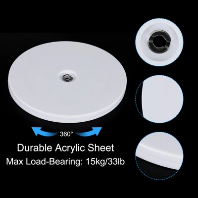 The rotating swivel turntable is commonly used for displaying and organizing items in exhibitions, showrooms, or at home. It allows easy access to products and creates an attractive presentation. The rotating turntable is made of high-strength plastic, ensuring durability, excellent load-bearing capacity, resistance to wear, and impact resistance. The 360-degree rotating design allows for easy display on all sides of items. The built-in steel balls are fixed on the plastic mesh to prevent detachment, ensuring even force distribution and smooth rotation. Suitable for displaying laptops, tablets, TVs, monitors, speakers, potted plants, artwork, and more. It can also be used for organizing and storing items in cabinets. Note: Please confirm the required size before purchase.