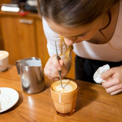 - Great tool for carving patterns on coffee surface