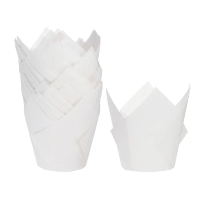 Tulip-style cups are made from greaseproof paper. They are heat resistant, ensuring they can withstand high temperatures without losing shape or color. The surface is grease-resistant and the paper cups are folded together to make them easy to separate from the cake. These cupcake baking liners are suitable for various baking treats such as cupcakes, desserts, and cookies. They are perfect for gathering occasions like birthdays, graduation parties, Halloween, Christmas, bridal showers, and other festive celebrations or delivering to catering events. Tulip cupcake liners fit standard cake pans and they can withstand temperatures up to 220°C/425°F, making them great for baking. Simply fill them with 3-4 ounces of batter, butter, or your desired filling and bake as normal. The tulip-shaped design creates an elegant product appearance, which can decorate food and make your food look more delicious. There is no need to scrub away baking residues, giving you more time to bake.