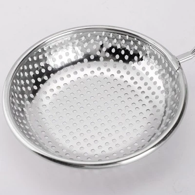 This mesh strainer is made of stainless steel material, durable to use. Designed with a perforated head, it is convenient to gain the dumplings and other fried food from hot water or oil. You can hang it on the wall with the hole to keep it dry and clean. It is good kitchenware for housewives and cooks. Use a mesh strainer to take out seeds, herbs, and pieces of hard food from your broths, sauces, dressings, and more. The strainer features a single film of satisfactory metal mesh that effortlessly strains bulky ingredients for more crediable food quality. The product’s colour may be different from the picture due to different computers. Please allow a 1-3cm difference due to different manual measurements.