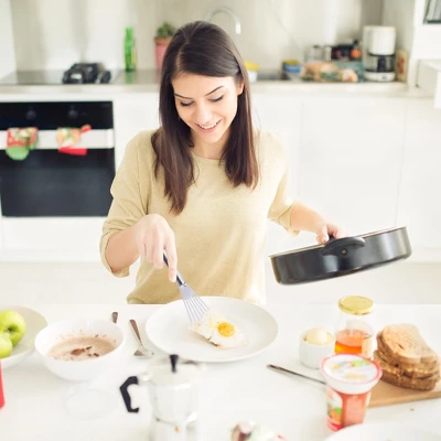 The good-quality stainless steel is more durable and keeps you away from the trouble of kitchen utensils rusting or breaking. It is being readily used in the kitchen for the purpose of quick, easy, and convenient turning or preparing along with a lot of similar other usages. Thin, angled edge slips under food easily when cooking for an optimized experience. Long round handles make you more safe and comfortable to use. There is a hole at the end of the handle, you can hang it on the wall and dry it.