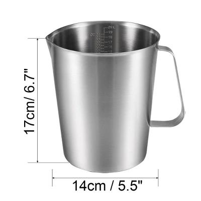 Made completely of unbreakable stainless steel, this cup is much sturdier than plastic or glass and will last much longer. Its full-sized, easy-to-grab handle and easy-to-read measurement indicators are designed to make measuring and pouring a breeze. Plus it’s dishwasher safe making for easy cleanup. Whether you are preparing a course meal or a simple dessert, the Measuring Cup will be your faithful cooking partner from start to finish. This measuring cup has a sleek and modern look and is perfect to use at home, a restaurant, a bar, or a party. Whether you love to cook or have to cook a lot at home, this measuring cup is the perfect kitchen tool.It’s a must-have for the modern kitchen. Precise measuring is the key to a perfect dish, ruin your by adding too much or too little, this cup will help your food come out perfect. Please do not use the stainless steel measuring cup with acids, salts, and other corrosive chemical liquids. The spout is very good at preventing. Very clean and crisp transfer when pouring slowly. Liquids can be poured straight. Convenient Handle, Great Grip. The angled handle is made of stainless steel. It’s very easy to grab and easy to control the cup when pouring or scooping flour. Closed handle, easy to store, just hang it on the wall of your kitchen. The handle does not get hot when transferring hot liquids.