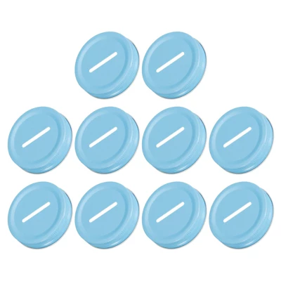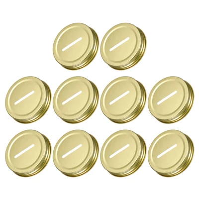Compact size designed to fit regular mouth mason jars and with a coin slot, therefore most sizes of coins are suitable for these lids. Vertical stripe design, concave-convex design with vertical stripes on the outside to increase friction between the palm and the lid and facilitate opening and closing. Material constructed from a thin steel plate as the substrate, tin plated on its surface, and multi-protective film layers. With corrosion resistance, an odorless glossy surface, lightweight, and strong adaptability to ambient temperature. Washable and reusable, the canning lid is washable and suitable for the dishwasher. Please wash the lids before using them on food, and it is better to dry to store them as soon as possible to extend service life and prevent rusting. Commonly applied to mason jars for collecting coin change, extra buttons that come with clothes, wish notes, and any other small objects, and for making DIY projects. It is a convenient tool for exchanging extra mason jars with a change organizer for us.