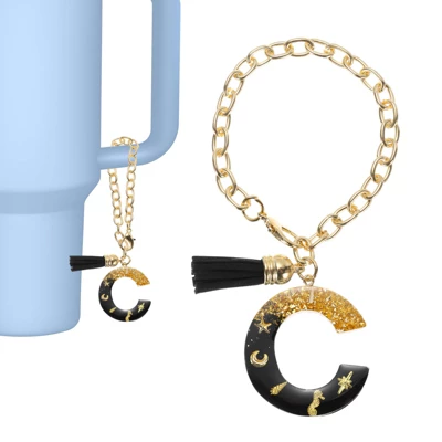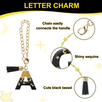 The letter charm for Stanley is a small decorative accessory with specific letters of the alphabet engraved on it. It can quickly identify your cup and be used to decorate the handle of the cup or wallet, backpack, etc. It can also be used on key chains. This letter charm features sparkling black sequins and has a lovely black tassel on the pendant, decorate your glass and make it unique. This initial charm easily attaches to the handle of your tumbler with an easy-open clasp that adjusts perfectly to fit most handle sizes. NOTE: Due to the difference in natural light and display resolution, the item color displayed in photos may be slightly different from the real object.
