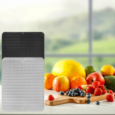 - Raised anti-slip design keeps mat in place on wet counters