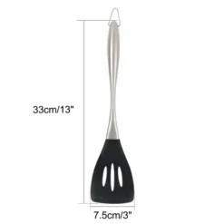 The Slotted Turner is made of great quality Silicone and handle is made of less steel, which ensures that the turner couldn’t be broken easily. Long-lasting, each Turner is anchored by careful production.This turner is dishwasher safe and incredibly easy to clean by hand. And Silicone sturdy, durable construction with a comfortable non-slip handle allows you to effortlessly cook the foods you enjoy without melting your favorite spatula.A silicone turner is designed with a hanging ring which helps to save a lot of space for your kitchen, keeping the kitchen desk in order, which can create more pleasure in cooking.The hanging loop on the end for easy carriage and storage.Cook your favorite meals without worrying, as the slotted turner is heat resistant to 450°F.They are great kitchen tools for cooking flipping hot food like pancakes, steaks, hamburgers, fish, omelets, and fried eggs.Dishwasher safe. Easy cleaning and care. With its odor resistance, it’s easy for hand washing as well.Do not use abrasive cleaning pads, as they may scratch the surface.Material: Silicone, Stainless Steel.Total Size: 33 x 7.5cm/13″ x 3″(L*W).Head Size: 11.5 x 7.5cm/4.5″ x 3″(L*W).Package Content: 1 x Slotted Turner.Note:1. Due to the shooting and screen setting difference, the color of the item may be slightly different from the pictures.2. Variability of 3-5 mm is possible due to the measurement process.