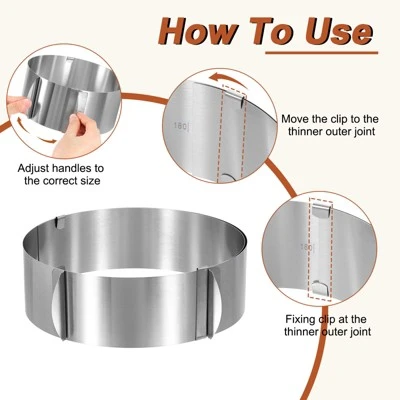 The round cake ring is made of tough stainless steel, which is sturdy and durable, with corrosion, rust, and high-temperature resistance for long-lasting use. The cake baking ring has a polished surface, is easy to clean, and can be easily peeled off from the mousse cake without causing damage, suitable for bakers and experienced professionals, perfect for baking delicious cakes. The cake ring diameter can be adjusted from 6 to 12 inches, which makes it flexible to make pastries of different sizes. It is equipped with 2 handles and opens on both sides to expand the size, making baking easier. Metal cake circle rings are suitable for baking, layering and shaping, and can make round tarts, cakes, mousses, pies, cookies and other desserts, suitable for home, bakery, cake shop or restaurant use.