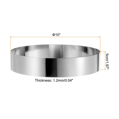 The round cake ring is crafted from robust stainless steel, ensuring durability with corrosion, rust, and high-temperature resistance for extended use. Its polished surface and smooth edges make it perfect for baking delightful cakes with minimalist decoration. This mousse cake ring is easily disassembled and cleaned, providing convenience and versatility for ovens, refrigerators, and microwaves. Simple to operate and maintain, it can be washed manually or in a dishwasher. Metal cake circle rings are apt for baking, layering, and shaping, ideal for creating cakes, mousses, pies, cookies, and other desserts, whether at home, in bakeries, cake shops, or restaurants.