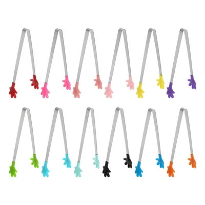 These small serving tongs are crafted with a stainless steel handle, making them rust-resistant, sturdy, and durable. The heat-resistant silicone tips ensure safety and prevent deformation. Featuring a one-piece design and hand pattern tip, they increase the contact area with food, making it easy to grab. These tongs offer a comfortable grip, ensuring extended use. They are lightweight, portable, and suitable for cooking, serving, and barbecuing, perfect for travel, camping, and gatherings. Cleaning is simple as these mini food tongs are dishwasher safe. Please avoid direct contact with open flames.