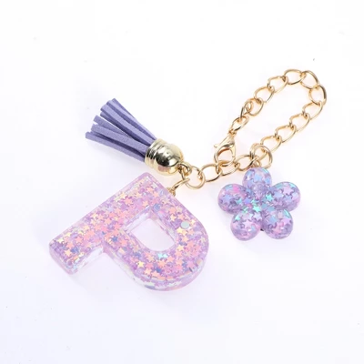 Unique Bargains Star Sequin Letter P Flower Tassel Water Cup Pendant Purple 1 Pc