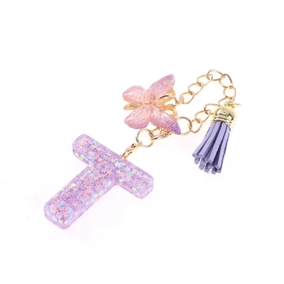 Unique Bargains Star Sequin Letter T Butterfly Tassel Water Cup Pendant Purple 1 Pc