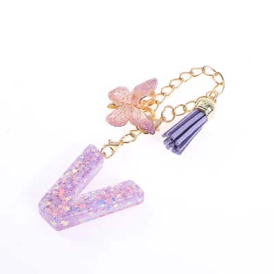 Unique Bargains Star Sequin Letter V Butterfly Tassel Water Cup Pendant Purple 1 Pc