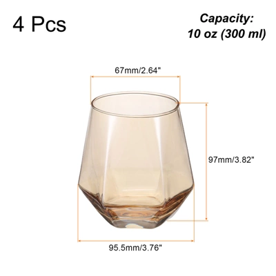 Calcium sodium glass material offers superior optical properties, providing good transparency to clearly show the color and texture of drinks. The diamond-like textures and bright refraction details shine in the light, offering an outstanding experience. Diamond-shaped wine glasses with transparent walls and golden rims contrast sharply with red, white, or rose wine. The stemless design features a stable base to reduce tipping and allows hand temperature to adjust the drink’s temperature. The modern elegant unique curve design is both beautiful and practical, enhancing the drinking experience. Suitable for whiskey, red wine, cocktails, or cold drinks, these glasses are perfect for various social occasions, birthdays, weddings, Father’s Day, bachelor parties, and other celebrations. They can also be used as a holiday gift. Note: Clean in time after use to avoid residual alcohol or dirt; suitable for hand washing.